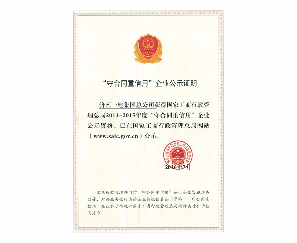 全國守合同重信用企業